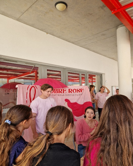 Un grand merci à Nina, Gaël et Mathilde, étudiants en médecine qui ont été à l’écoute des élèves et des personnels. Ils ont rappelé l’importance du dépistage du cancer du sein et l’importance de transmettre ce message aux mamans, aux sœurs, aux grands-mères mais aussi aux papas. Et oui, le cancer du sein masculin existe malheureusement aussi !